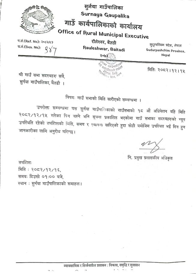 गाउँ सभाको मिति सारीएको सम्बन्धमा ।