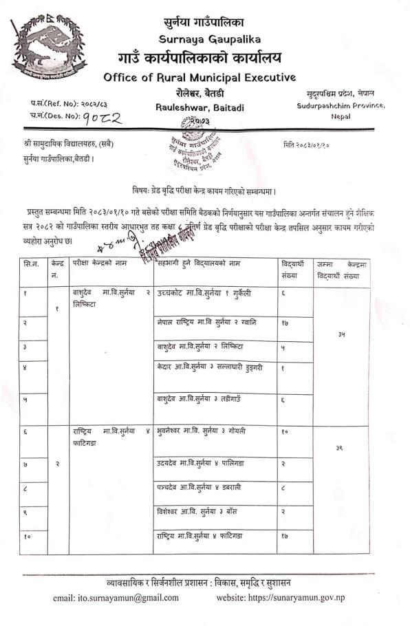 » ग्रेड वृद्धि परीक्षा केन्द्र कायम गरिएको सम्बन्धमा ।