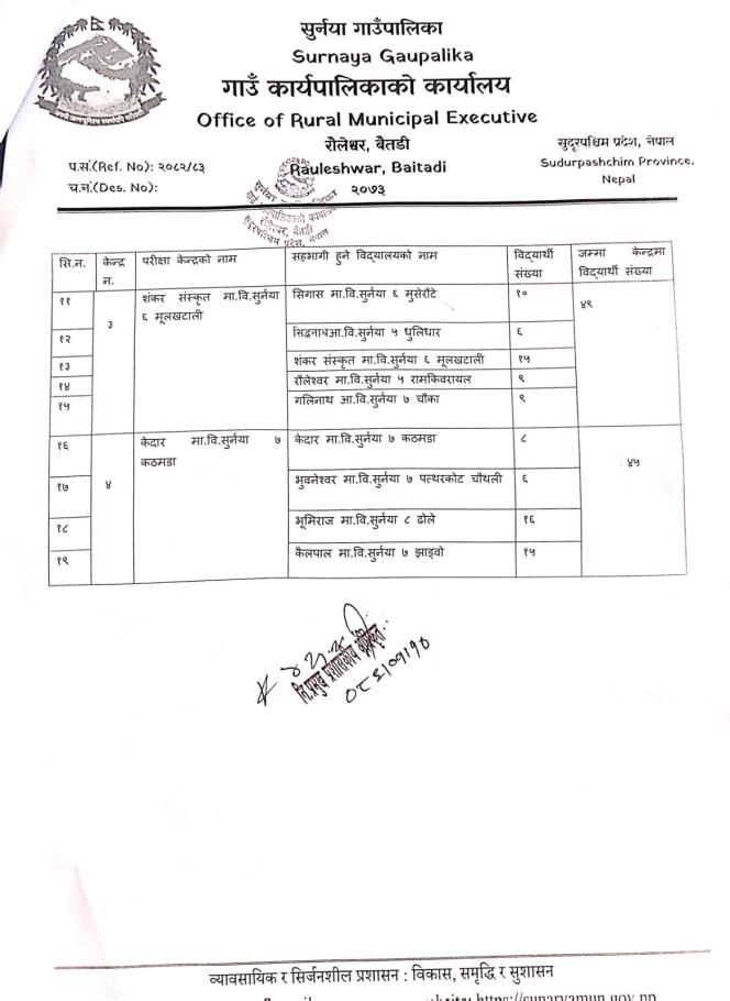 ग्रेड वृद्धि परीक्षा केन्द्र कायम गरिएको सम्बन्धमा ।