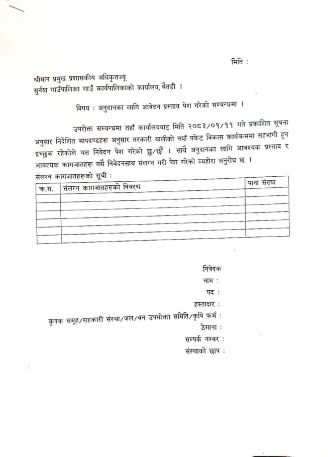तरकारी बालीको नयाँ पकेट विकास कार्यक्रम संचालन सम्बन्धि सूचना ।