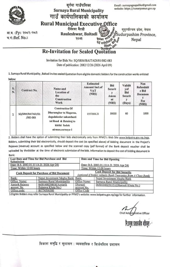 सार्वजनिक खरिद/बोलपत्र सूचना