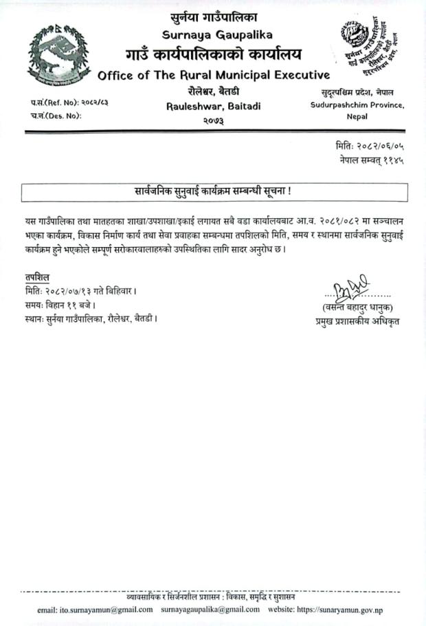 » सार्वजनिक सुनुवाइ सम्बन्धी सुचना ।