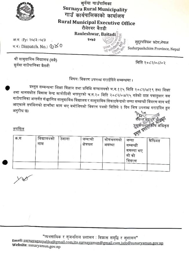 बिबरण उपलब्ध गराईदिने सम्बन्धमा ।