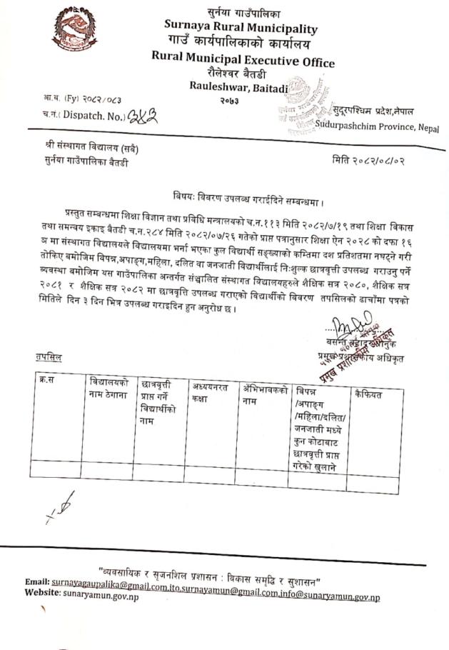 बिबरण उपलब्ध गराईदिने सम्बन्धमा ।