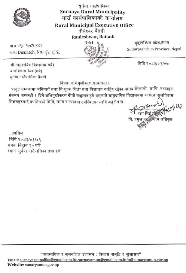 अभिमुखीकरण सम्बन्धमा ।