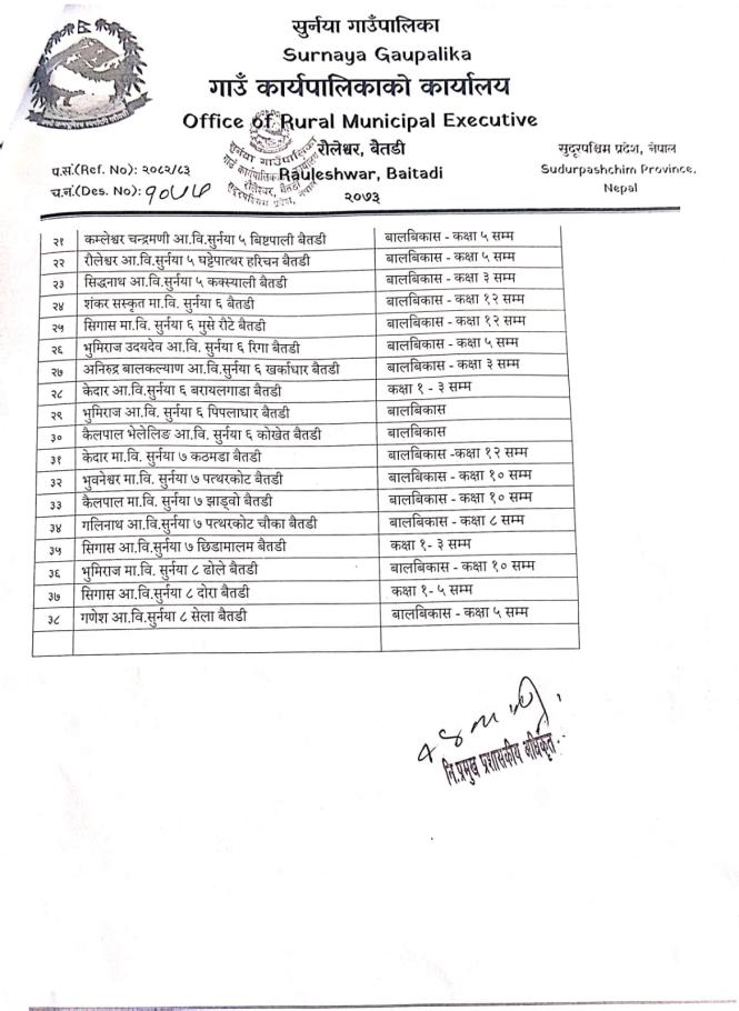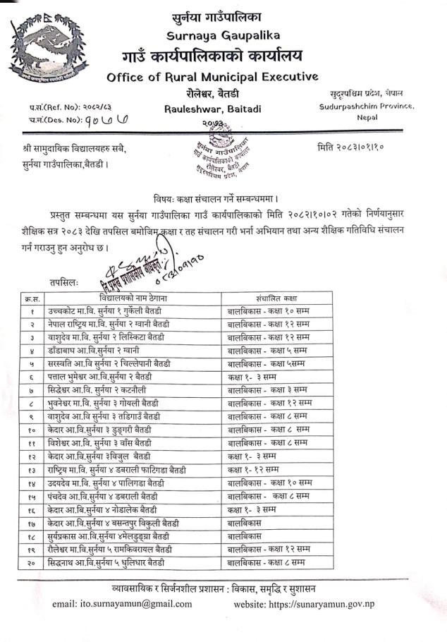 कक्षा संचालन गर्ने सम्बन्धममा ।