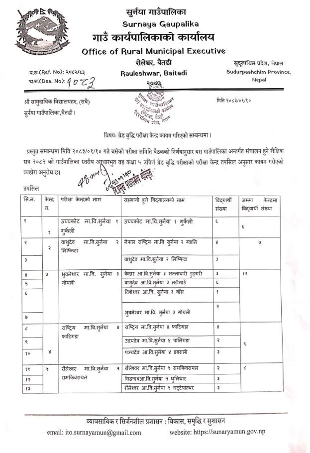 » ग्रेड वृद्धि परीक्षा केन्द्र कायम गरिएको सम्बन्धमा ।
