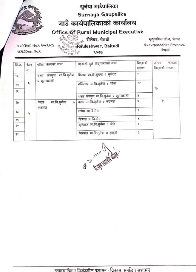 ग्रेड वृद्धि परीक्षा केन्द्र कायम गरिएको सम्बन्धमा ।