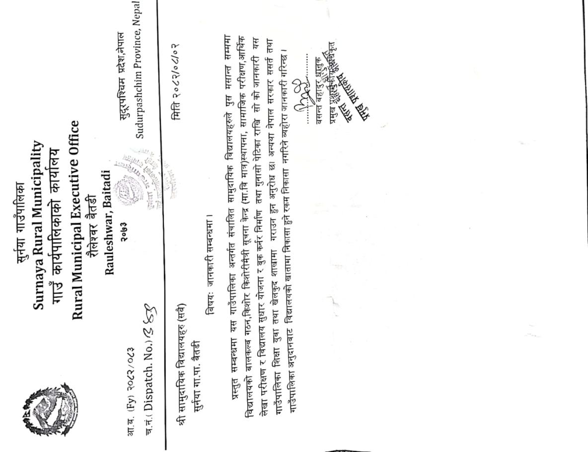 बिबरण उपलब्ध गराईदिने सम्बन्धमा ।