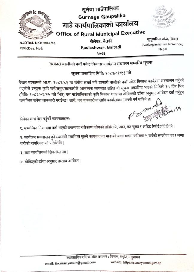 » तरकारी बालीको नयाँ पकेट विकास कार्यक्रम संचालन सम्बन्धि सूचना ।