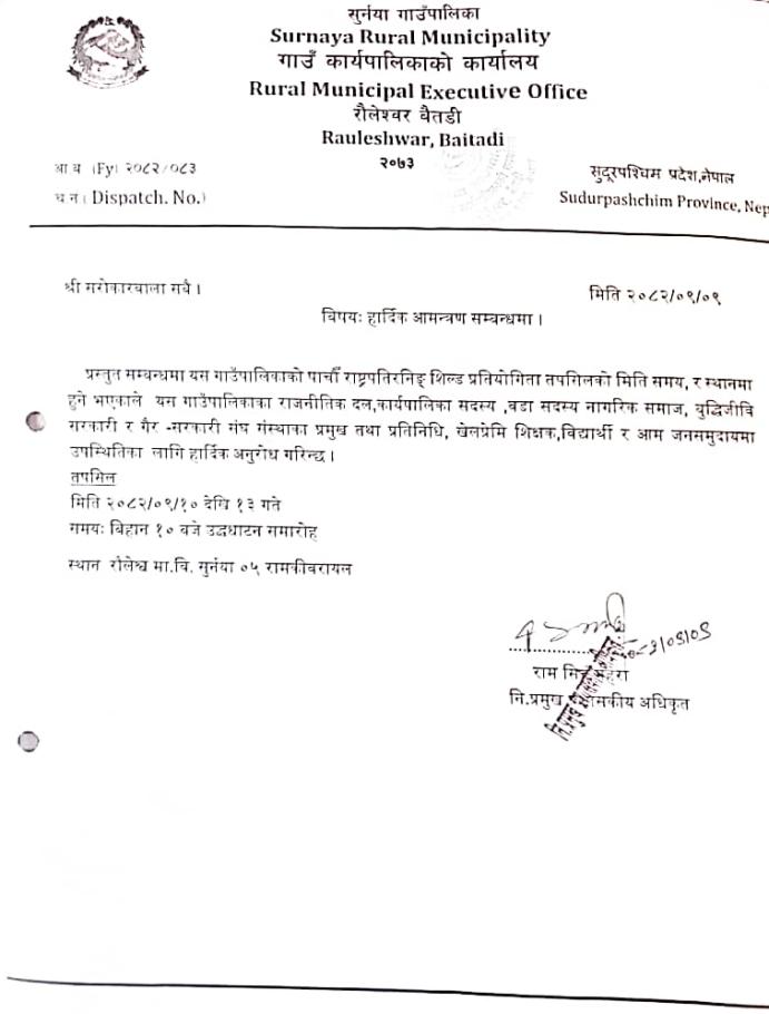 हार्दिक आमन्त्रण सम्बन्धमा ।