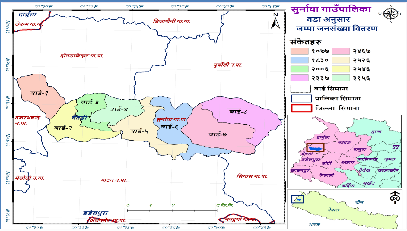about सुर्नया गाउँपालिकाको नक्सा ।